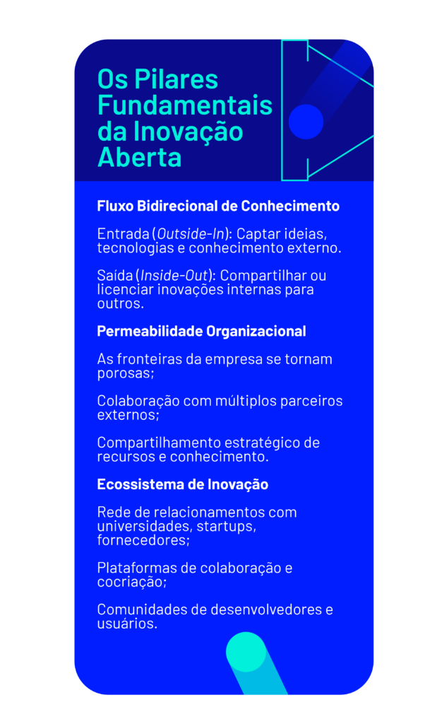 Em essência, a inovação aberta é uma filosofia que reconhece a importância da troca de conhecimentos para a construção de novas soluções.